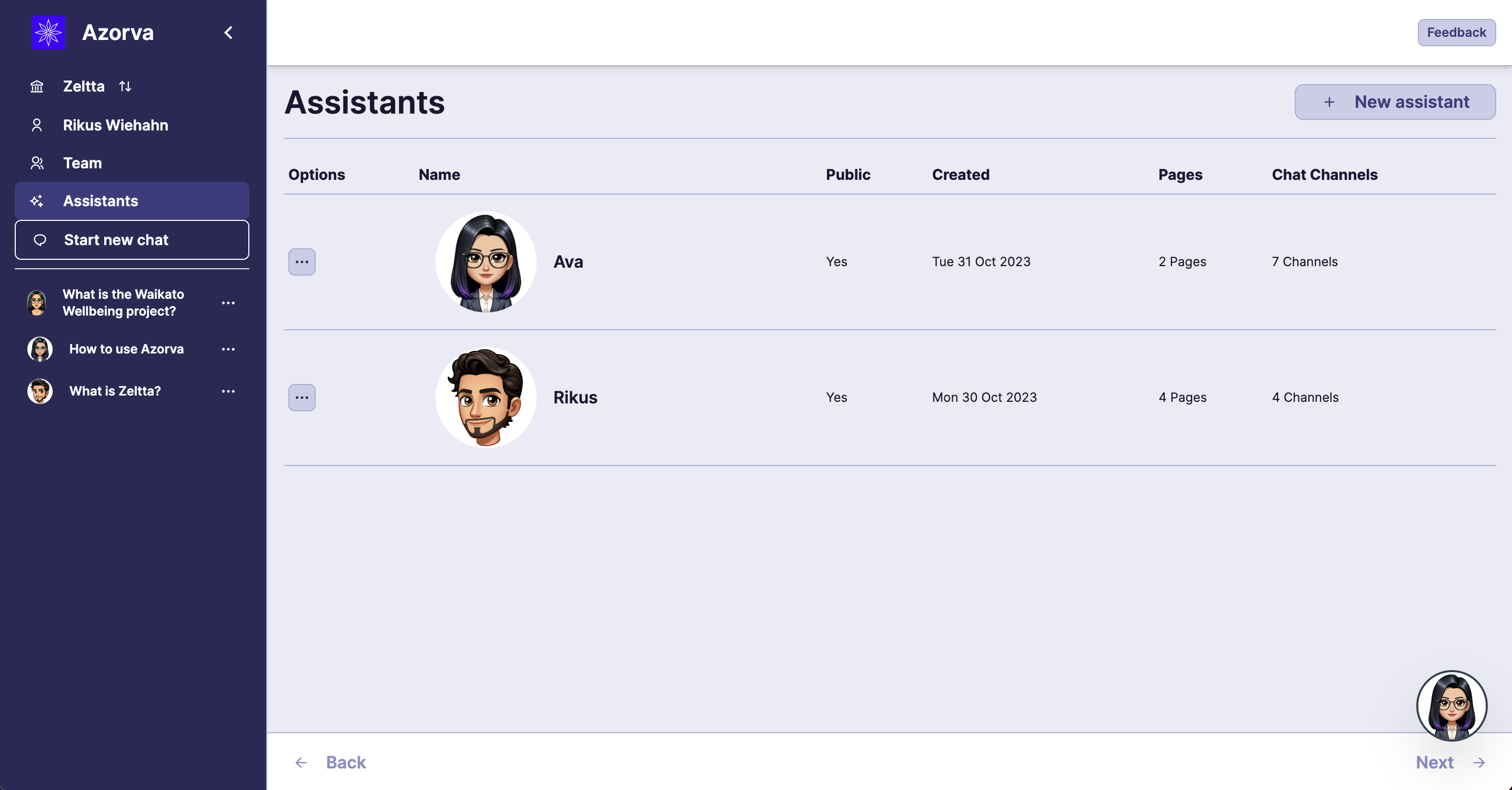 Azorva is platform for developing your own custom GPT-4 powered assistants to help your website visitors with everyday questions about your organization, products, or services.